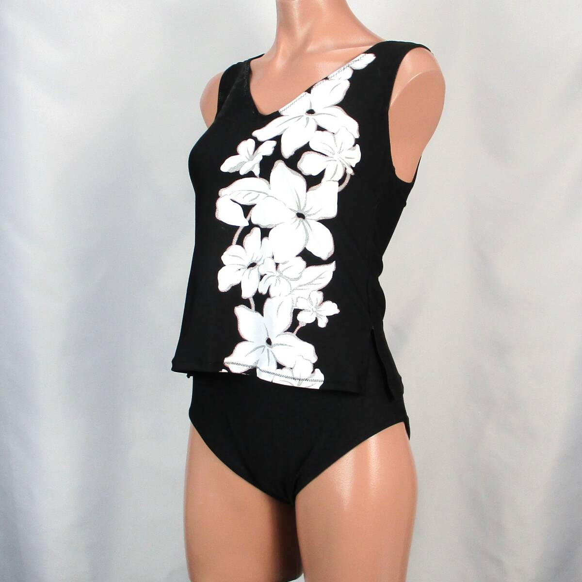 - E8967★水着 タンキニ風 ワンピース レディース 11L ブラック 黒白 モノトーン ホワイト 花柄 キラキラ ラメ 水泳 プール ビーチ 海