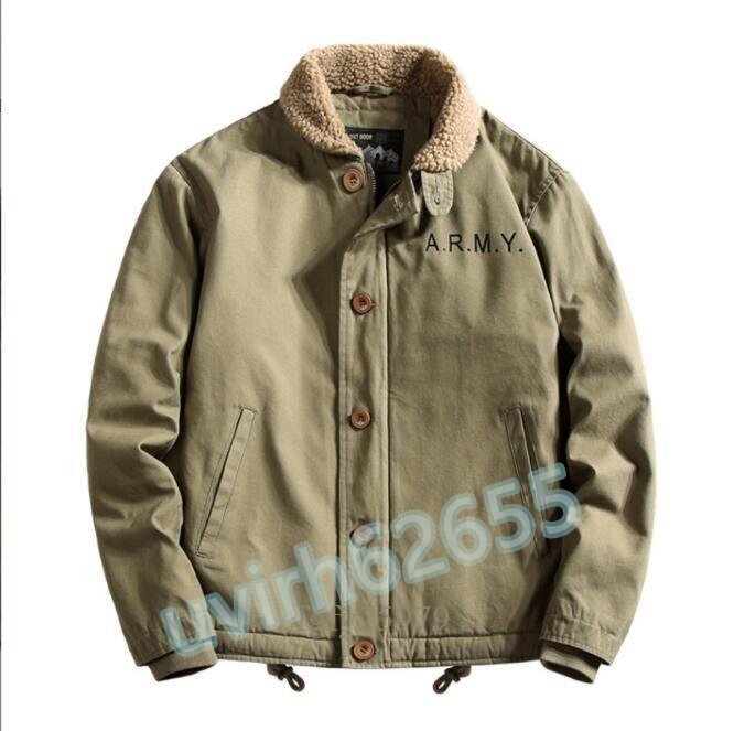 - 新品お洒落 ミリタリージャケット メンズ N-1 デッキジャケット ボアジャケット 裏起毛 ブルゾン ジャケット あったか M-4XL