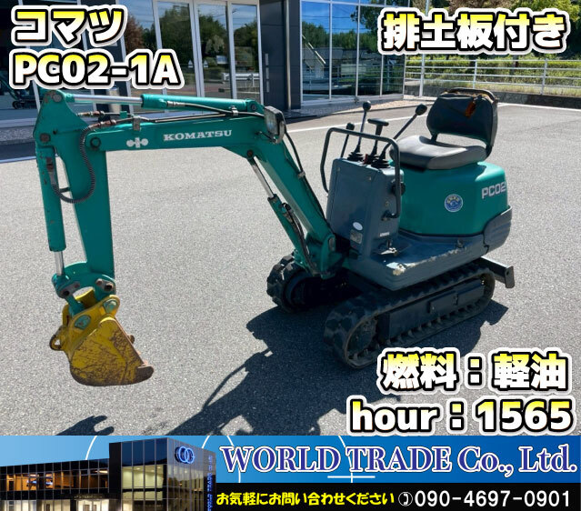 - 【広島発】下取り・ローン受付可! コマツ ユンボ PC02-1A 排土板付き 燃料:軽油 hour:1565 油圧ショベル