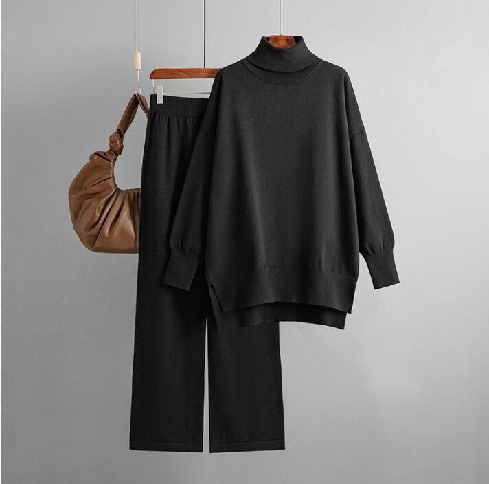 - 343 パンツスーツladiesレディース ◇ 魅惑Styleセクシー ◇ニット素材 秋冬 カジュアル 上質 ブラック