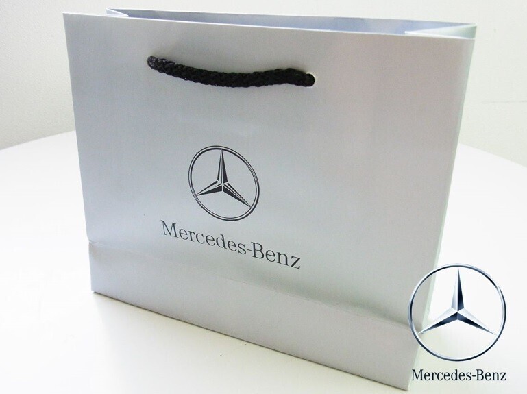 > ★正規品★Mercedes-Benz メルセデスベンツ★ロゴ入りショッピングバッグ 手提げ袋 厚紙紐取手 小サイズ★シルバー銀【本物保証】非売品