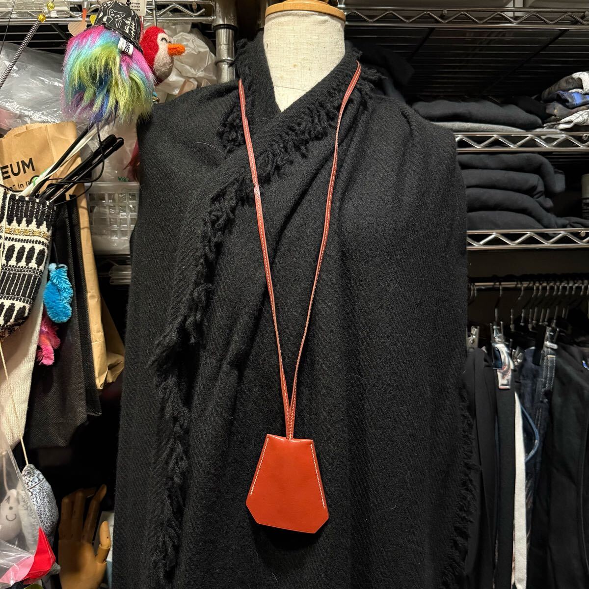 - HERMES エルメス レザー クロシェット ネックレス オレンジ ブラック キーリング マルジェラ期