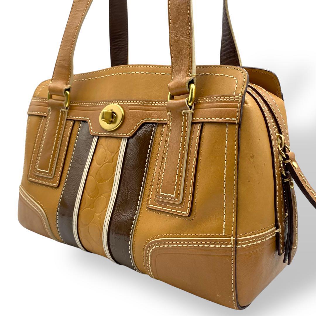 - 極美品 COACH コーチ ハンドバッグ オールレザー ターンロック 底鋲 茶