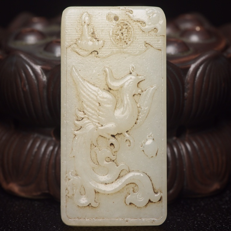 - 和田玉 秘藏 清代 鳳凰古玉牌玉佩 古玉 白玉 唐物 古玉彫 天然石 稀少珍品 古美術 古賞物 古置物 旧蔵 9.22