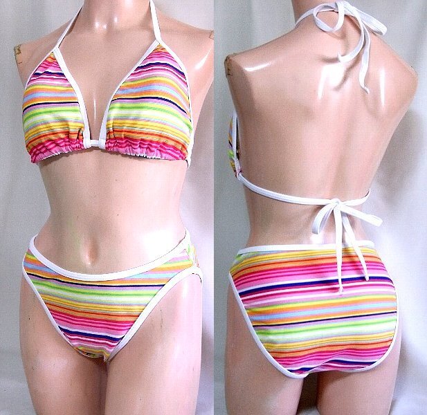 - ★☆カラフルボーダー柄ハイレグビキニ水着☆★