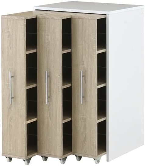 - オーク×ホワイト色 蔵書がスッポリ収まる 脅威の収納力 12段 収納棚 本棚 スリム 大容量 ラック キャスター付き ブックシェルフ