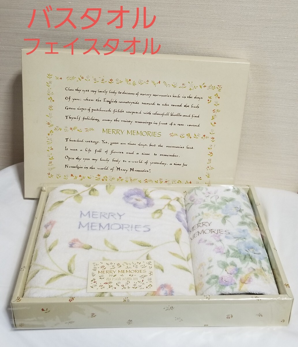 - T-453 [未使用品] UCHINO タオルセット バスタオル&フェイスタオル 2枚セット MERRY MEMORIES 花柄 綿100% 箱付 贈答品 保管品