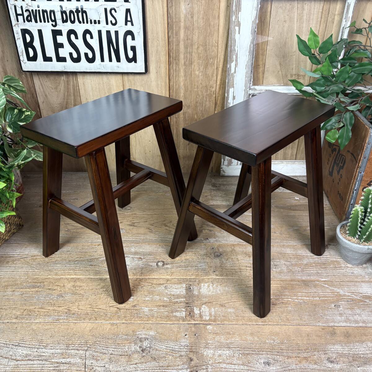 - 送料無料、アジアンエスニック木製長角スツール二脚セット(33㎝×40㎝)、椅子木製、原木天然無垢材、チェア、モダンインテリア、イス