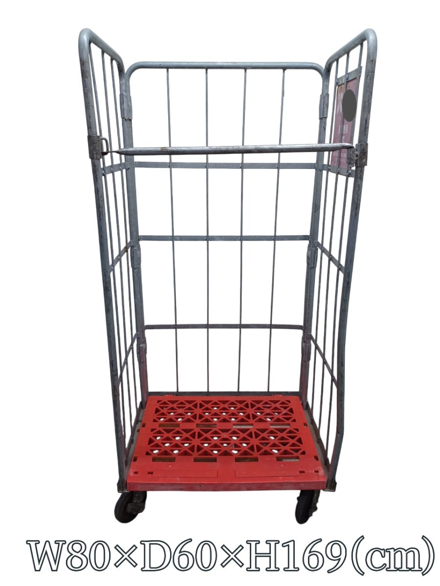 > 岩④【引取限定/愛知】 かご台車 カゴ台車 カゴ車 台車 ※ストッパーあり L字折り畳み可能 業務用 250923