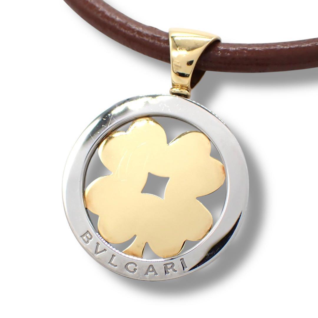 - ブルガリ BVLGARI トンド クローバー ネックレス チョーカー 750 K18 SS ステンレススチール ホワイトゴールド シルバー ブラウン 4067