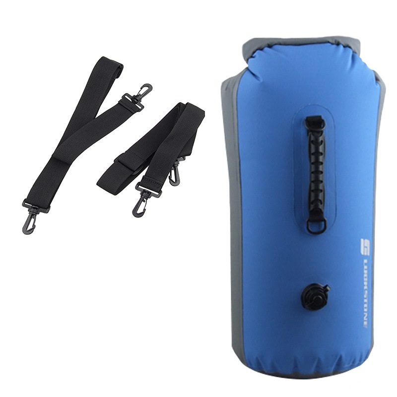 - 新品即決(送料無料) 完全防水60Lバックパック ブルー ロール式ショルダーバック エアバルブ付き