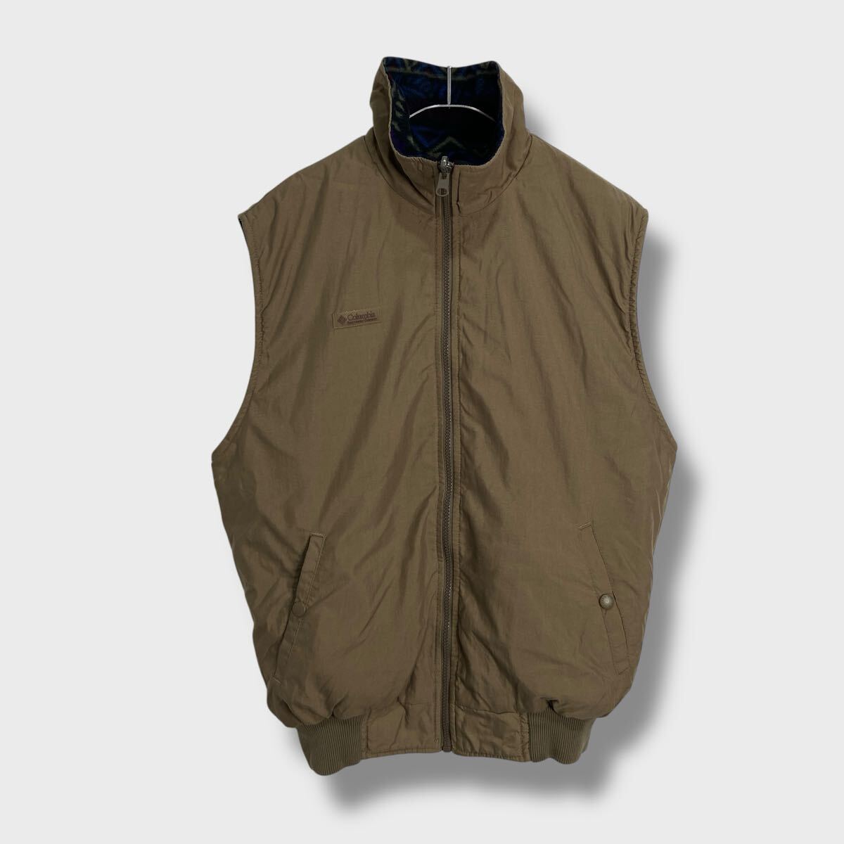 - 送料無料☆90s☆Columbia☆リバーシブルフリースベスト☆総柄☆ベージュ☆S