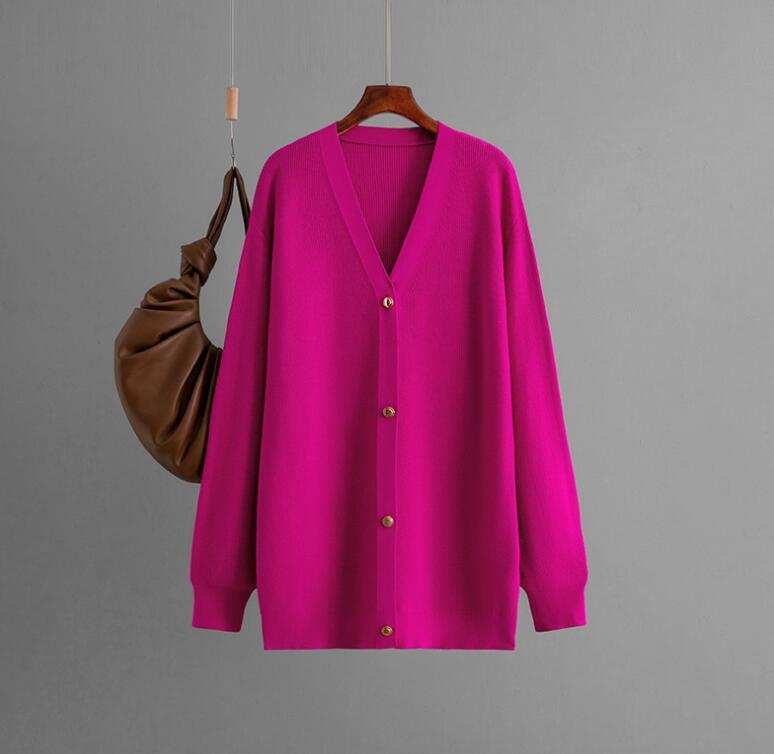- 346 ニットカーディガンladiesレディース ◇ 秋冬 上質 ◇ 暖かい 羽織 ローズ