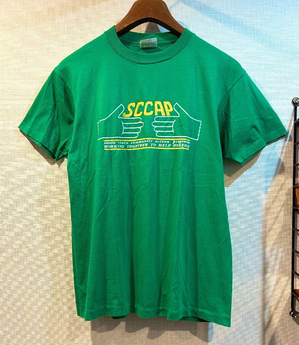 > ~90's USA製 ビンテージ Hanes ヘインズ SCCAP 緑 Tシャツ コットン プリントTシャツ L EG3163-2-30-EH05 検 フルーツオブザルーム 80's