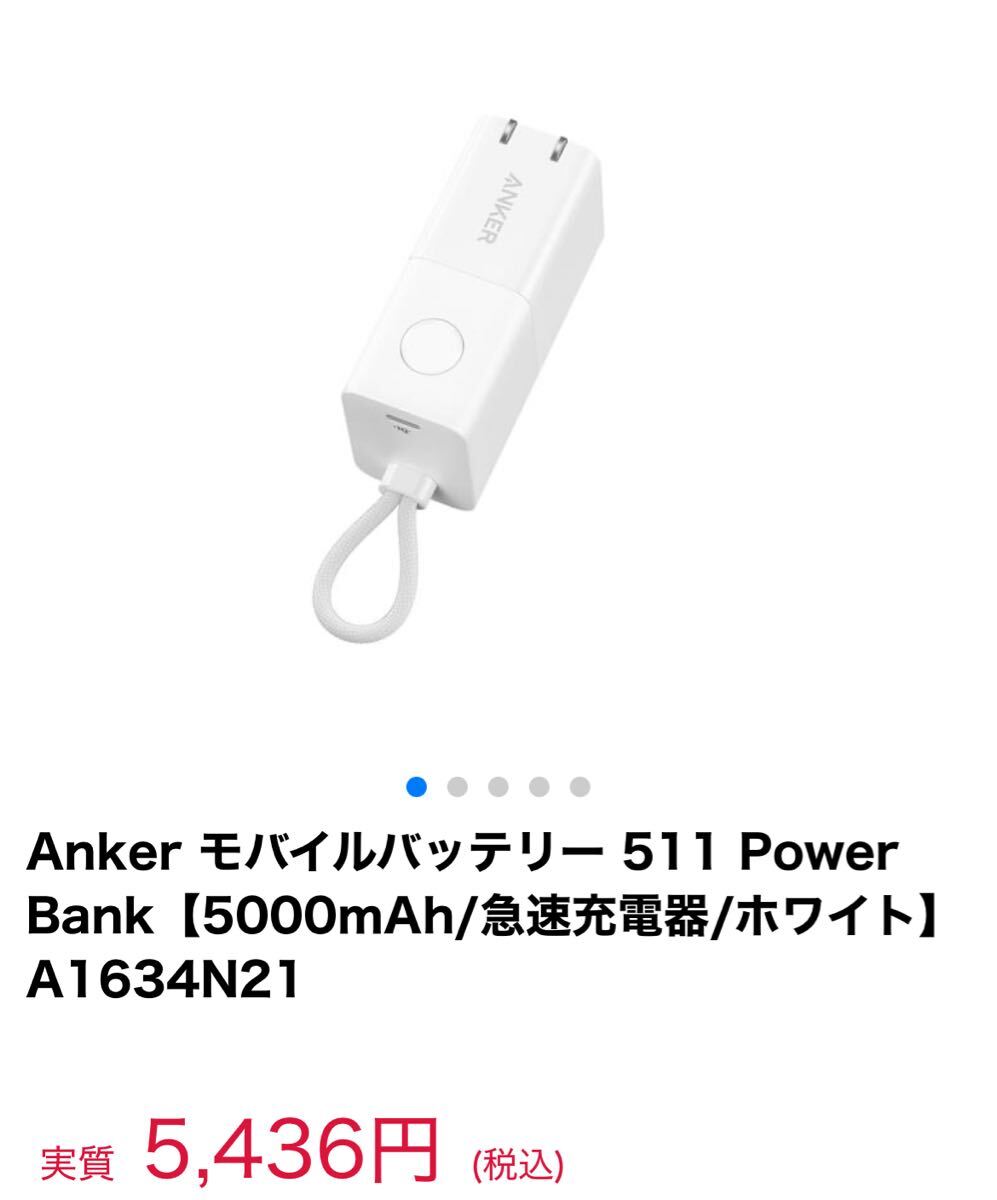 - A1634N21 (511 Power Bank PowerCore Fusion 30W 5000mAh ホワイト) 新品