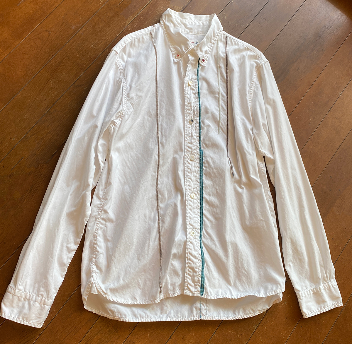 > TIGRE BROCANTE ティグルブロカンテ リメイク ブラウス 白 長袖 ホームスパン homspun ボタンダウンシャツ ステッチ Mサイズ 日本製