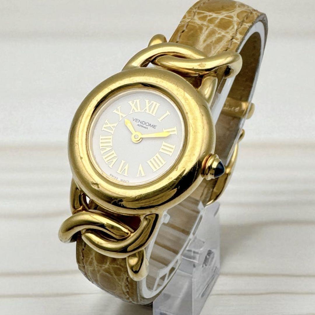 > 稼働 VENDOME AOYAMA ヴァンドーム青山 ゴールド ホワイト文字盤 腕時計 レディースウォッチ スイス製 クオーツ