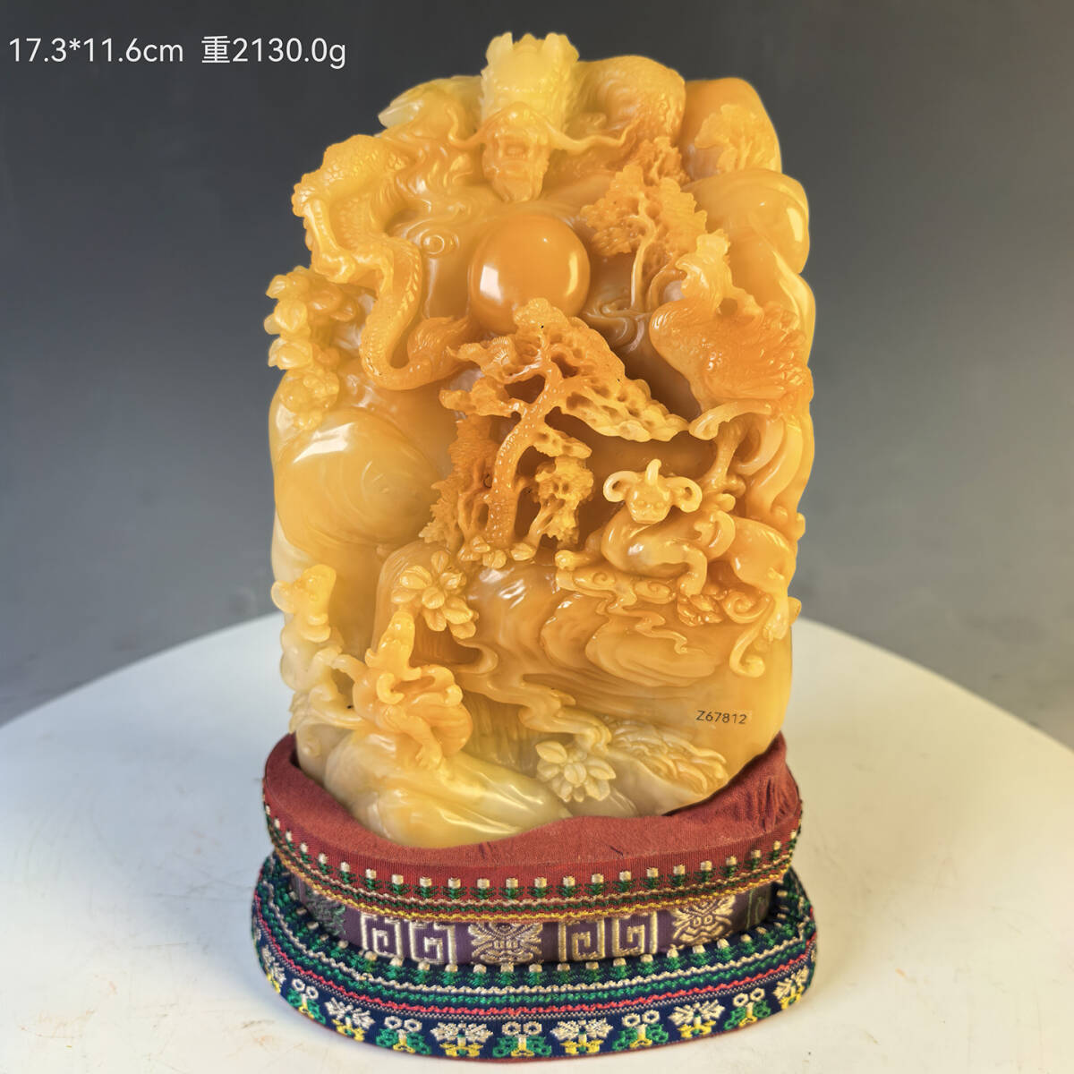 > 古石彫 中国・清時代 【田黄石彫山水龍鳳山子置物】 文房置物 古賞物 唐物 時代物 重さ2130g LT-2509120