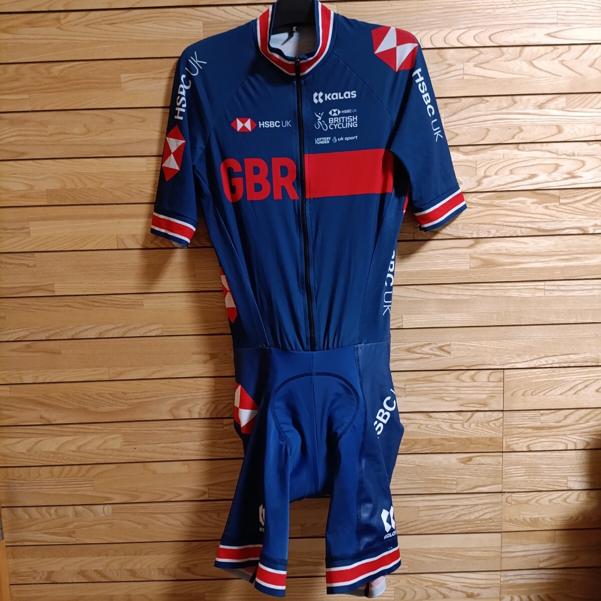 - 支給品 スキンスーツ イギリス代表 ナショナルチーム ワンピース GBR M 紺 ネイビー 半袖 スキンスーツ サイクルジャージ
