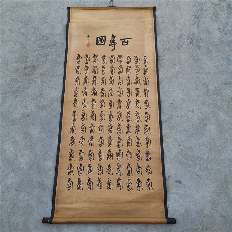 - 中国書道 美術 中国有名人 斉白石 百寿図 美術品 リビング 掛軸 縦軸 学習見本 表装なし 画仙紙 画芯 鑑賞 装飾 工芸品 印刷 zh1548
