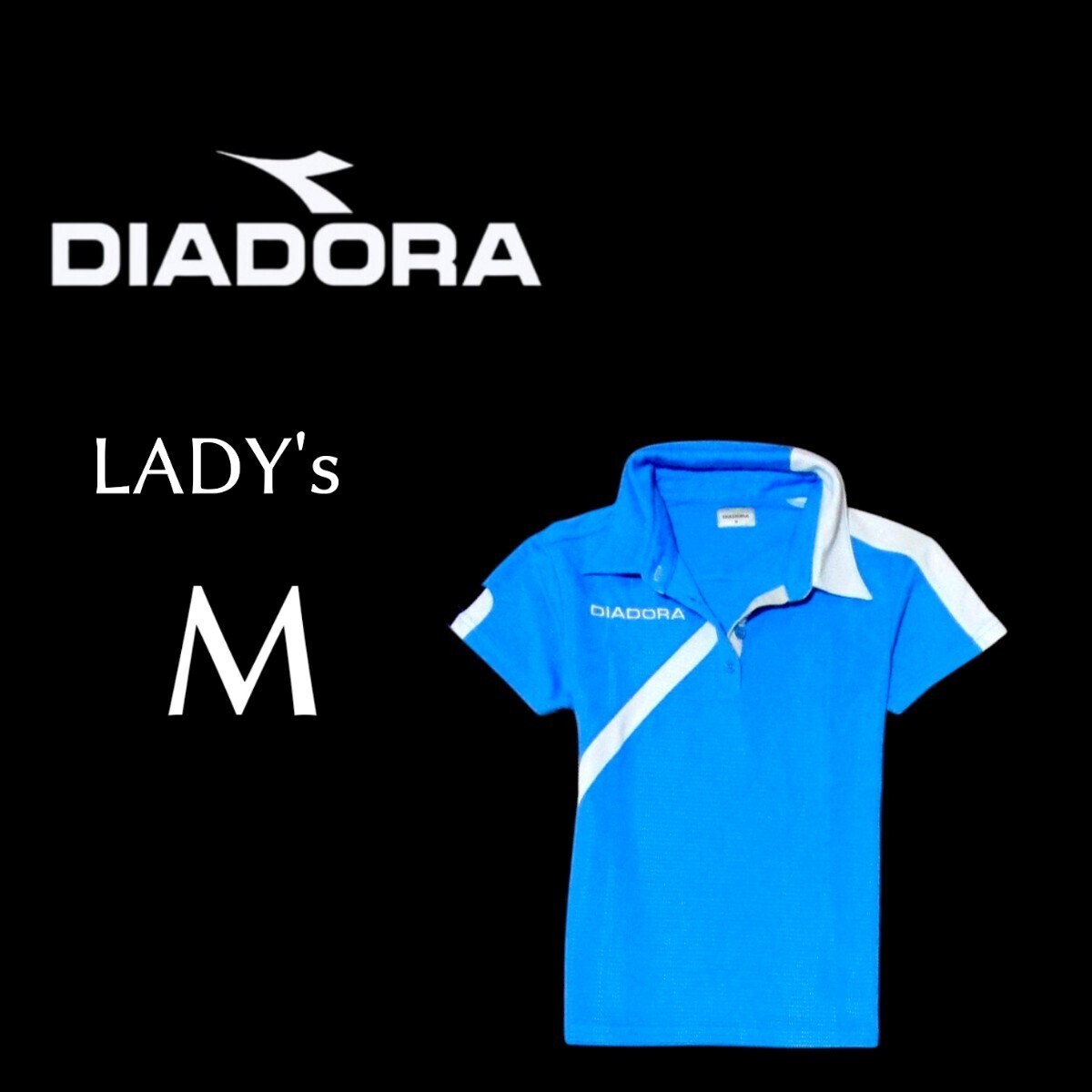 - 送料込み レディースMサイズ DIADORAディアドラ プラクティス半袖ポロシャツ 青色