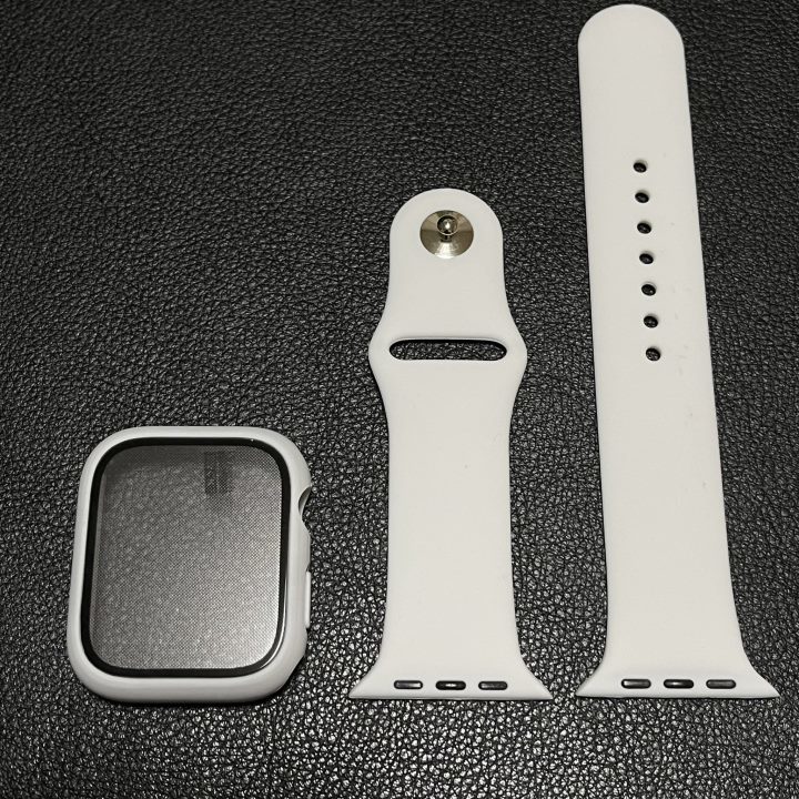 - 【2点セット】アップルウォッチ 45mm対応 ケースカバー+スポーツバンド 「ホワイト」バンドサイズ Sサイズ apple watch シリーズ 7 8