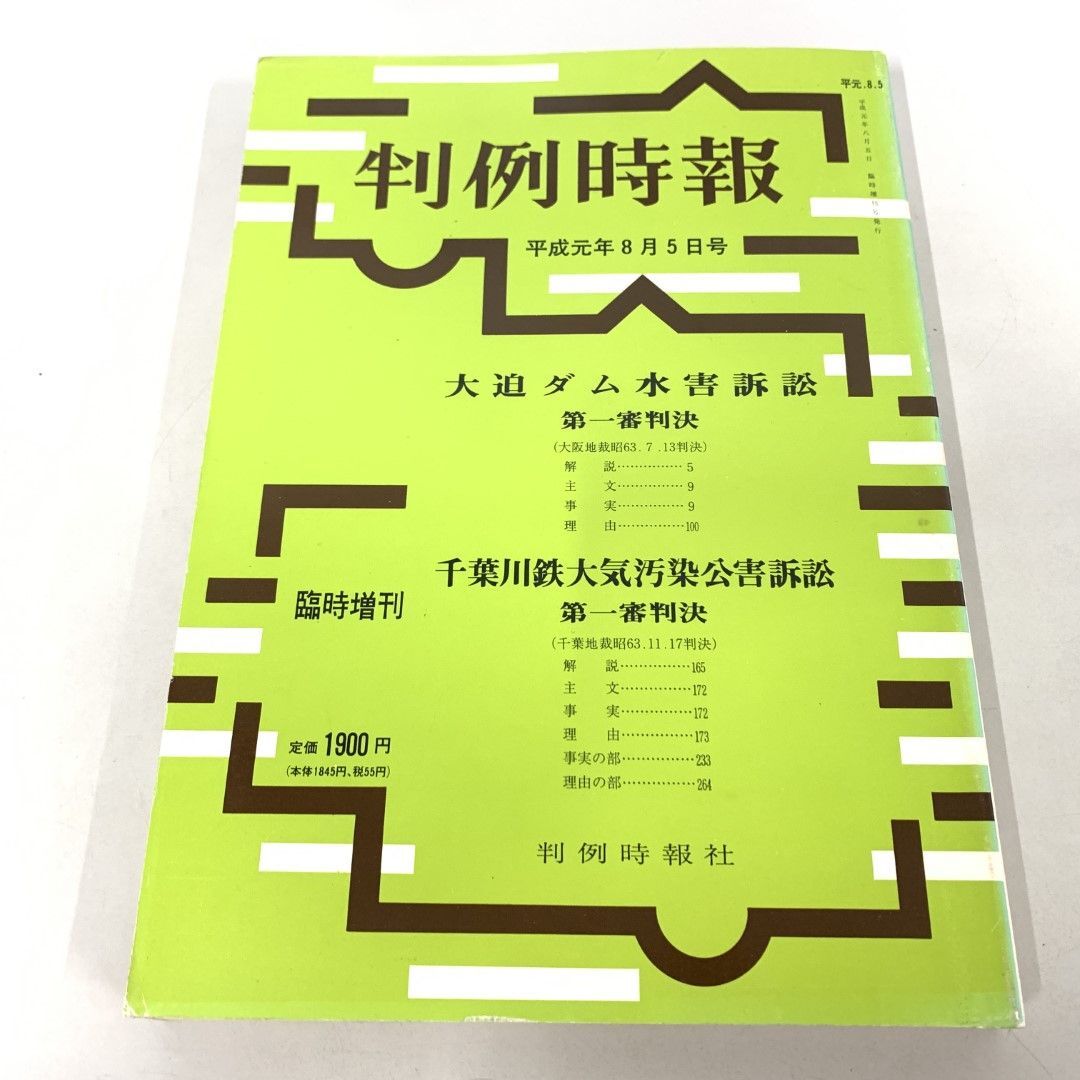 > ●01)【1点限り!・1円〜】判例時報 臨時増刊 平成元年8月5日号/大迫ダム水害訴訟/千葉川鉄大気汚染公害訴訟 第一審判決/判例時報社/A
