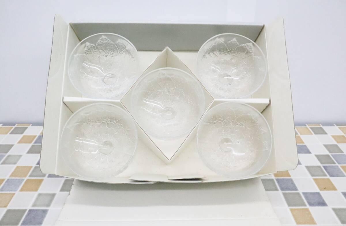 > △昭和レトロ/当時物 デッドストック!|シャーベットグラス 5客 セット|HOYA ホヤガラス FBW3170 デザート 皿 | ■P2600