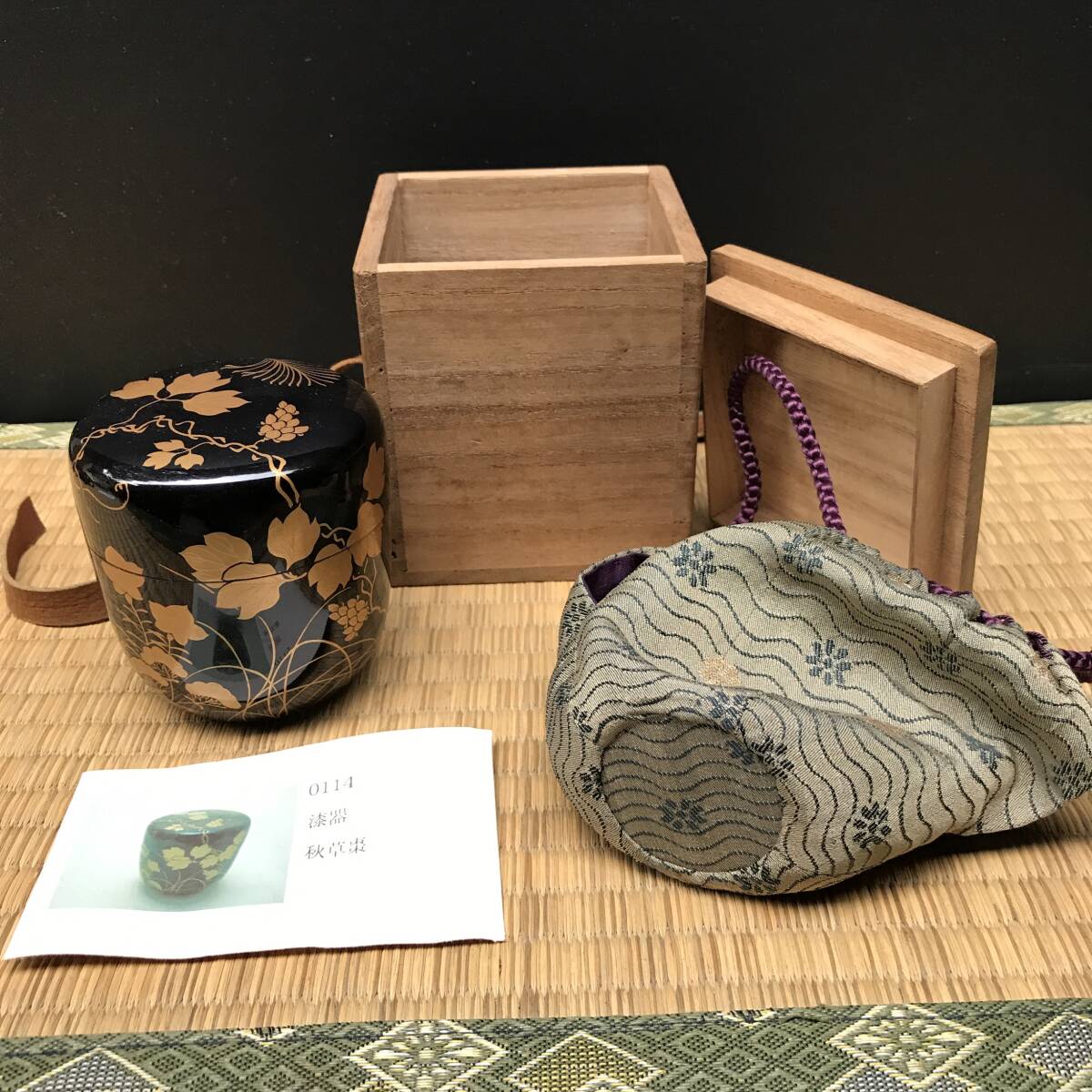 - なつめ 漆器 秋草棗 箱仕覆あり 茶道具 茶器(R70920_B)