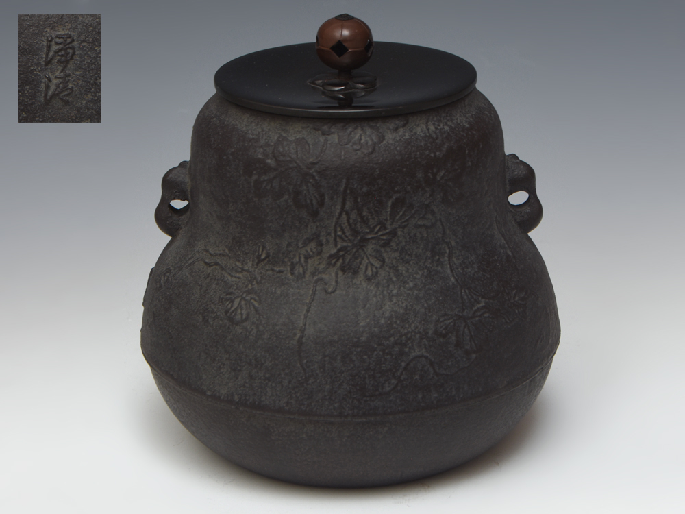 - 釜師 佐藤浄清(造)瓢箪釜 瓢釜 夕顔釜 箱なし 茶釜 茶道具 金属工芸 (検) 師事 根来実三 u1075o