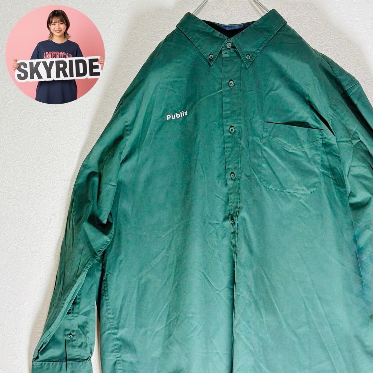 - 【人気】PORT AUTHORITY ポートオーソリティ 2000s 長袖シャツ 緑 3XL コットン100% ビッグシルエット ゆるだぼ ストリート系 古着 #SB0235