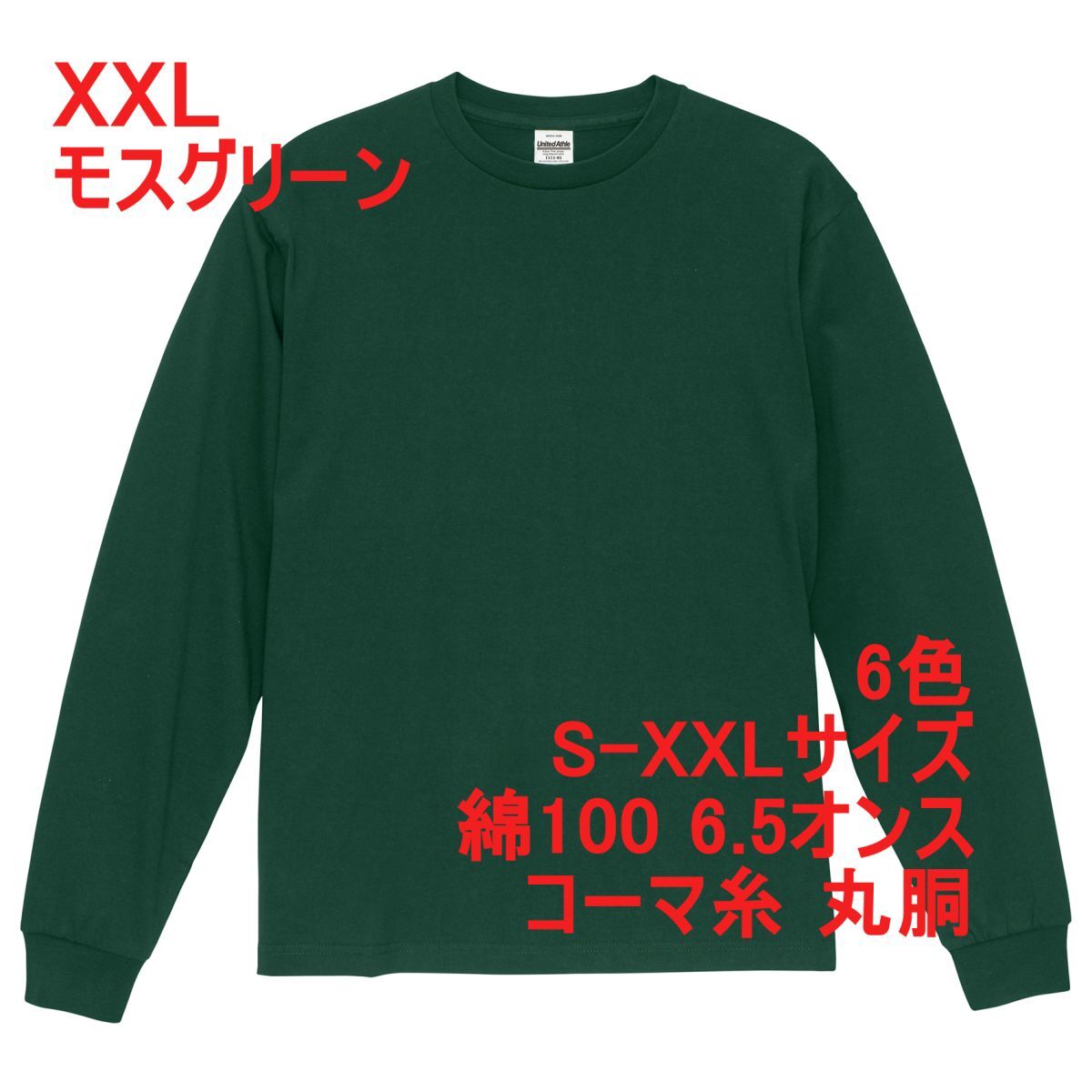 - Tシャツ XXL モス グリーン 長袖 厚手 特厚 6.5オンス 綿100% 袖リブ 2.1インチ 無地 無地T ロンT 定番 丸首 A2158 3L 2XL 緑 緑色 111101