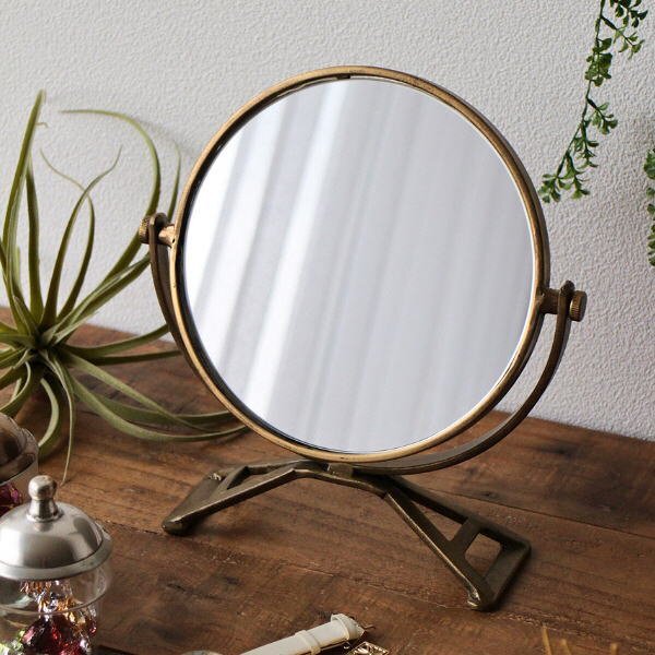- 鏡 卓上ミラー スタンドミラー テーブルミラー 丸型 アイアン アンティークなサークルスタンドミラーGD 送料無料(一部地域除く) kwb4009