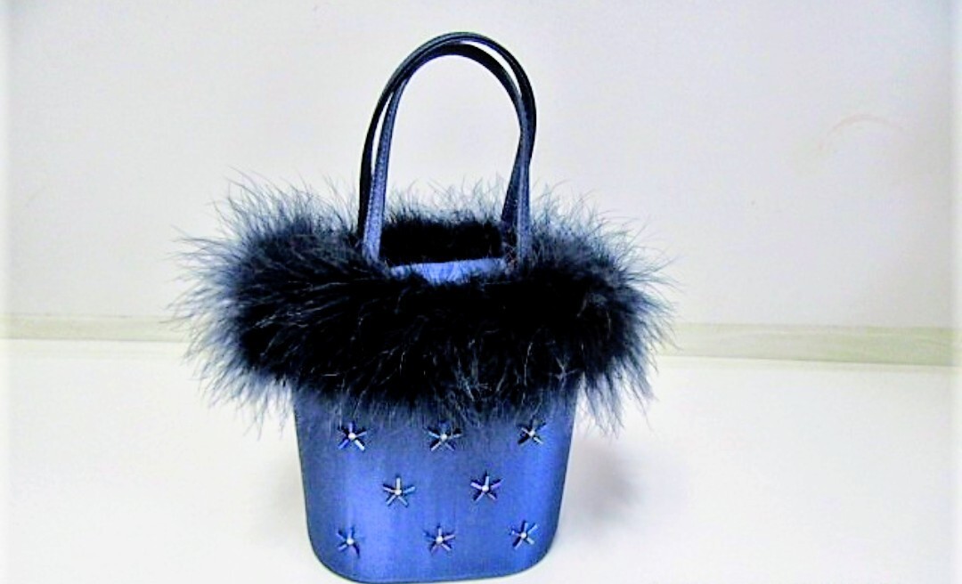 - 未使用 ファー&ビーズお洒落バック 紺系