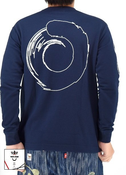 - 円相のハニカムロングTシャツ◆喜人 ネイビー Mサイズ KJ-52105 和柄 和風 長袖 ロンT きじん