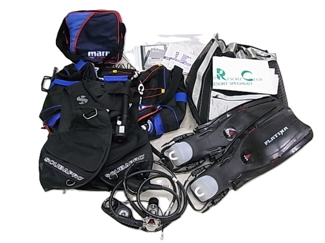 > e14057 スキューバダイビングセット Sサイズ TUSA mares SCUBAPRO PLATINA フィン/M-L 残圧計+コンパス/SCA-210BK セット