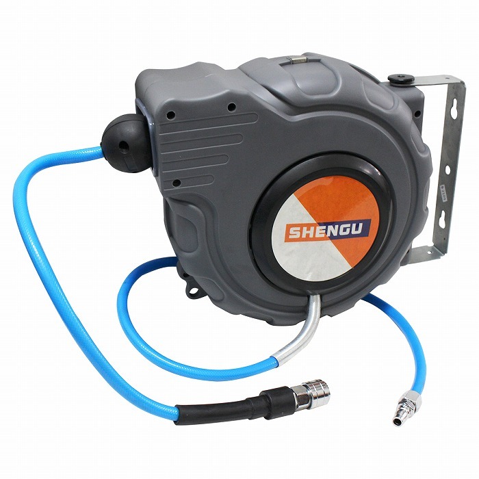 - エアーホースリール 15m 自動巻き 吊り下げ 壁掛け エアー ツール エア ホース ドラム式 コンプレッサー 天吊り 灰 グレー