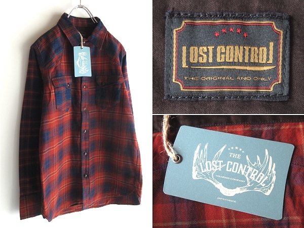 - 新品タグ付 LOST CONTROL ロストコントロール TRIPLE CHECK WESTERN SHIRTS インディゴ糸使用 トリプルチェック ウエスタンシャツ 2 レッド