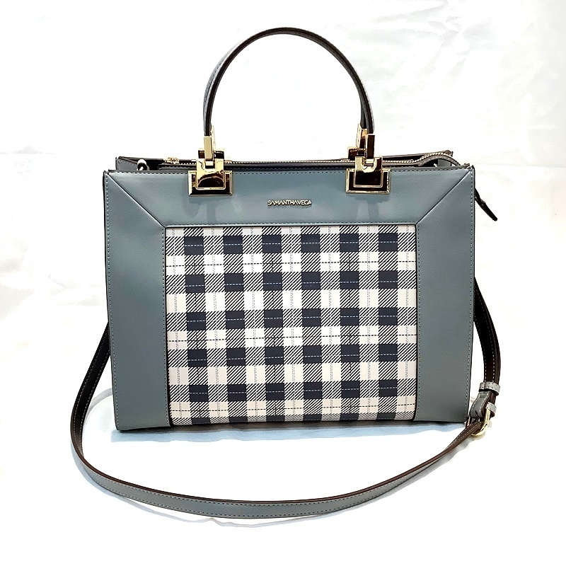 - サマンサベガ SAMANTHAVEGA シンプルスクエアトートバッグ チェック グレー SA6473AW03471 2WAY ハンド&ショルダー グレー【中古】KB-9658