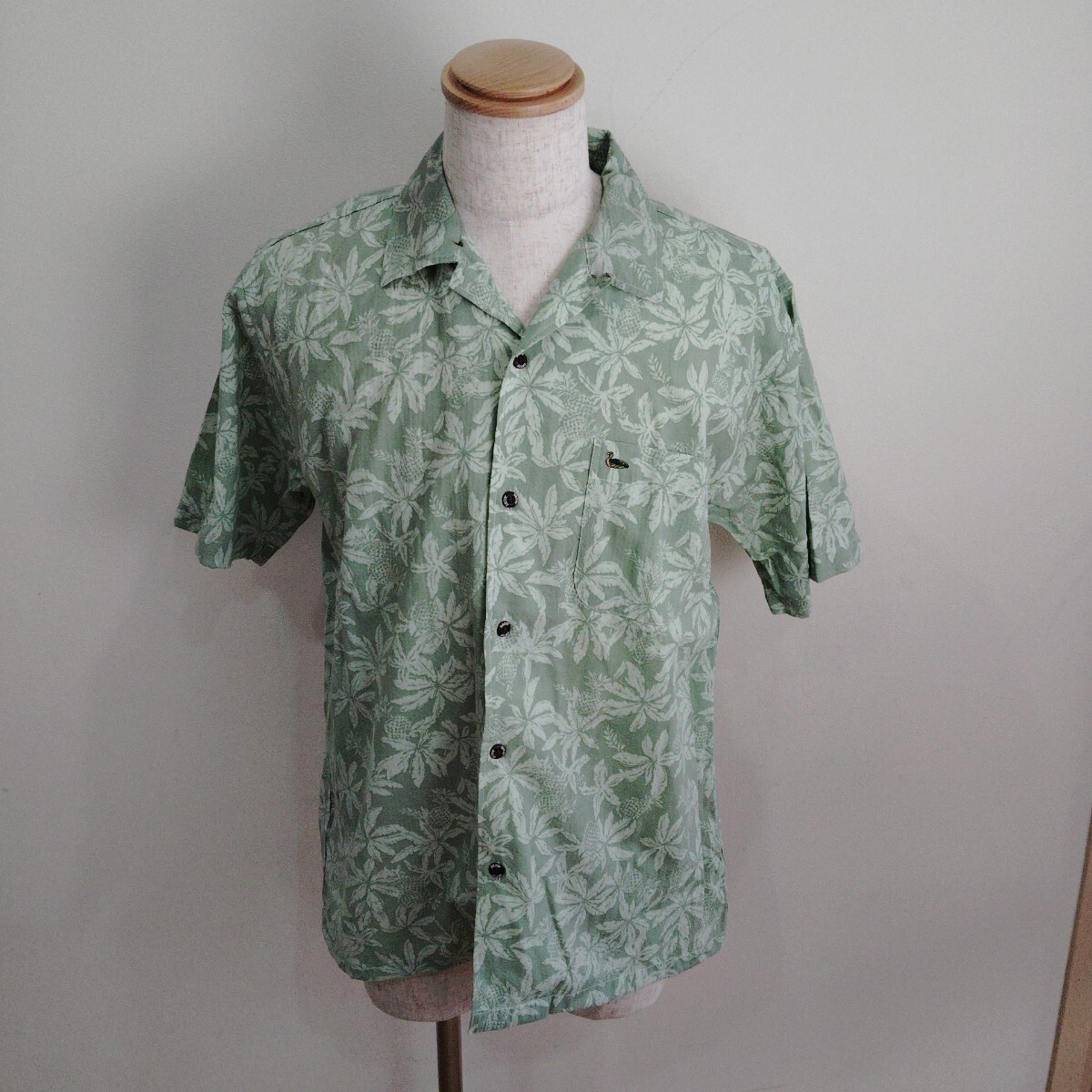- 0925/L/DECOY メンズ 半袖シャツ アロハシャツ オープンカラー 総柄 グリーン