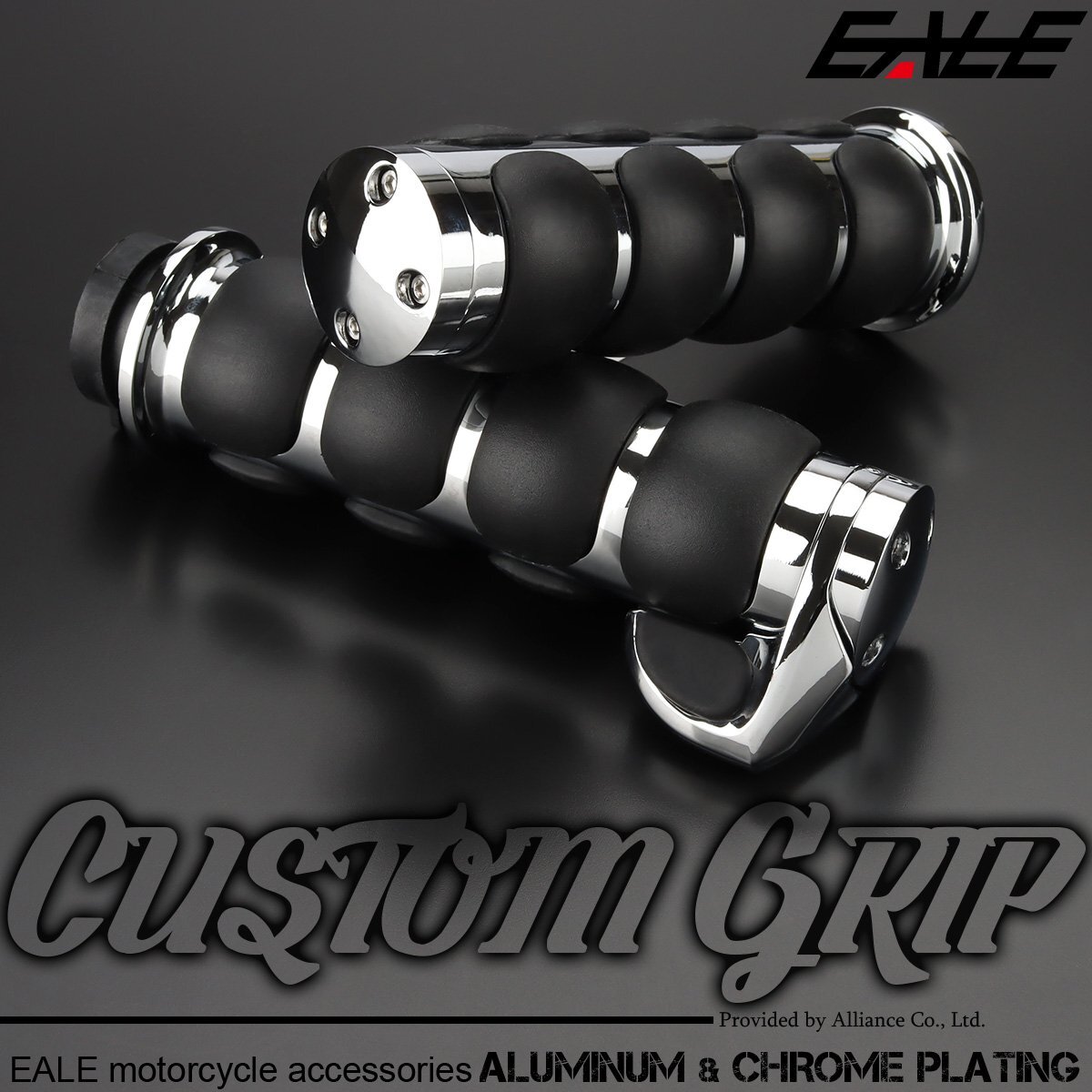 - バイク グリップ 1インチ ハンドル 左右セット ハーレー アメリカン スロットルアシスト バーエンド アルミ ラバー クロムメッキ S-581