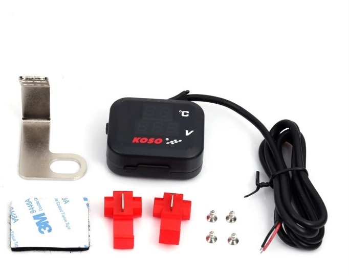- 3in1 デジタル 電圧計 温度計 オートバイ KOSO USB充電器 警告機能 ボルトメーター バイク部品