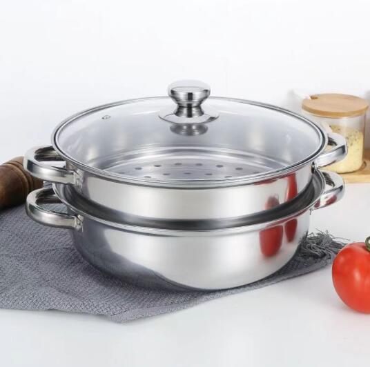 - 新入荷蒸し器蒸し鍋 28cm ih対応 鍋 ステンレスガス火対応両手鍋蒸し器蒸籠せいろ 二段 ガラス蓋付き スチーム調理器 蒸し料理 肉まん シ