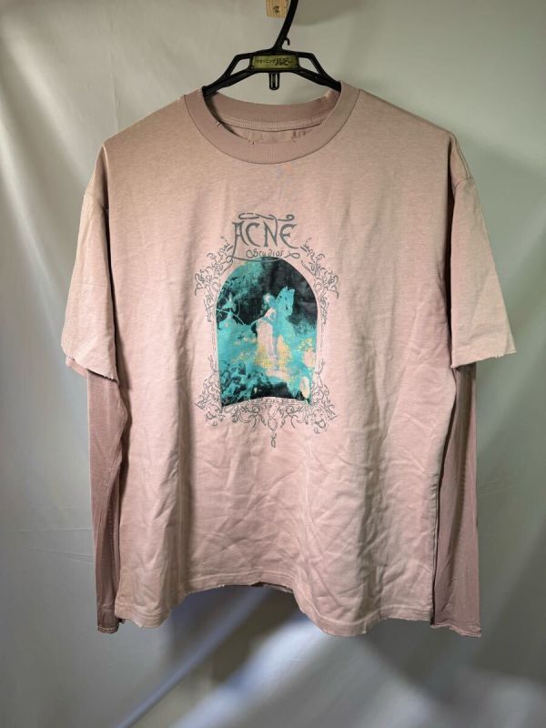 - Acne Studios トープ レイヤード 長袖Tシャツ レイヤード ピンク Y36