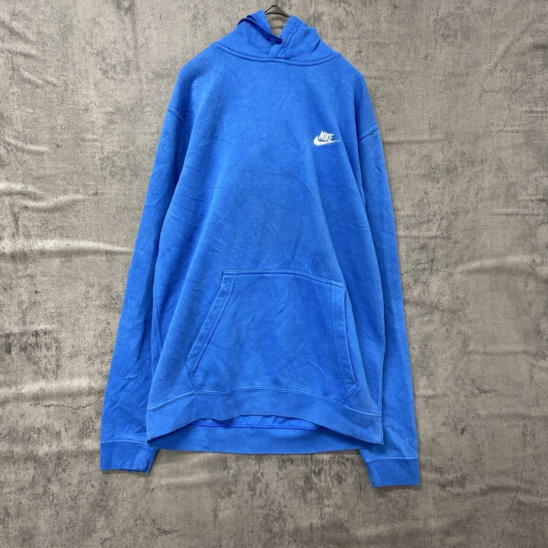 - ナイキ メンズ フーディ パーカー 青 刺繍ロゴ プルオーバー M【5736】