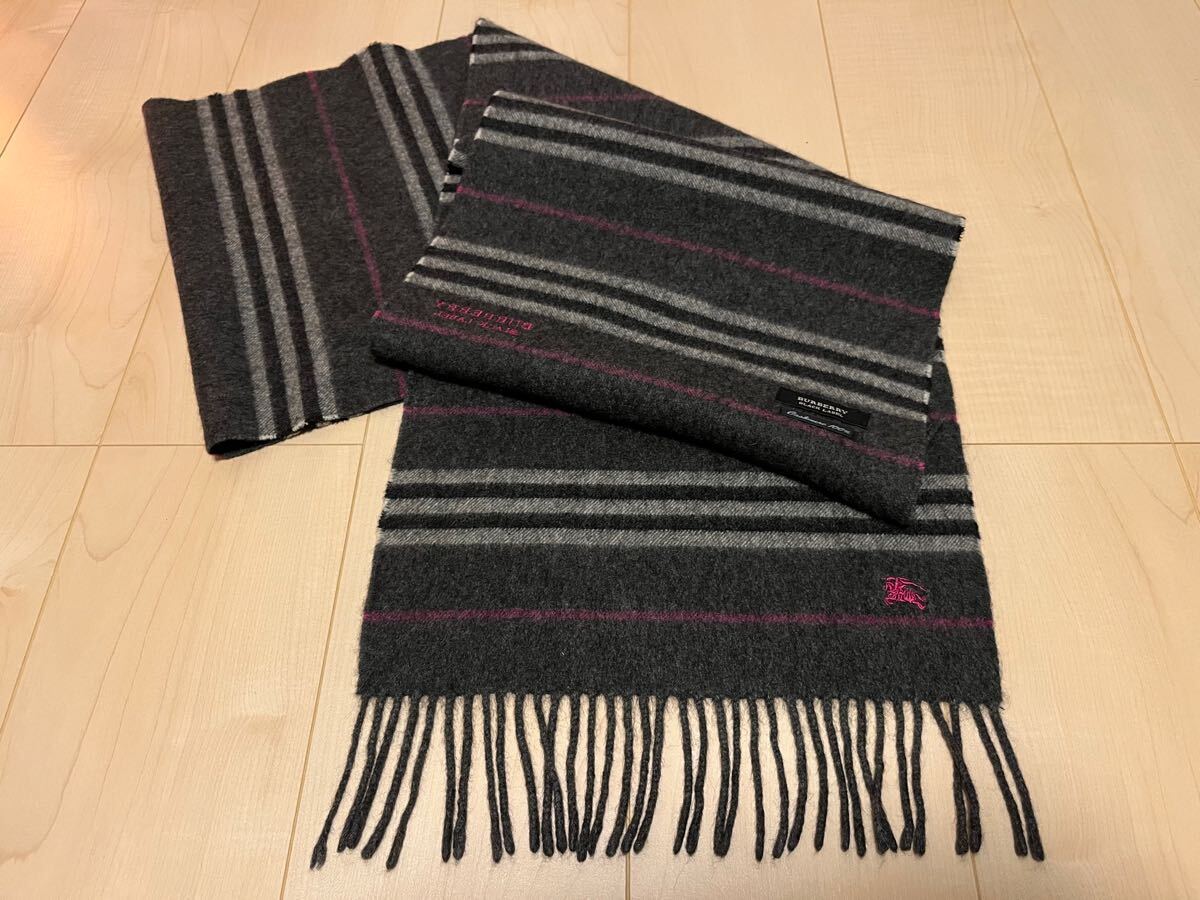 > BURBERRY バーバリーブラックレーベル マフラー カシミア100% チャコール 美品 送料無料!!