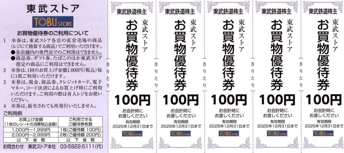 - 東武鉄道 株主優待券 東武ストア お買物優待券 3,000円分(100円券×30枚) 2025年12月31日迄 1~5組有③