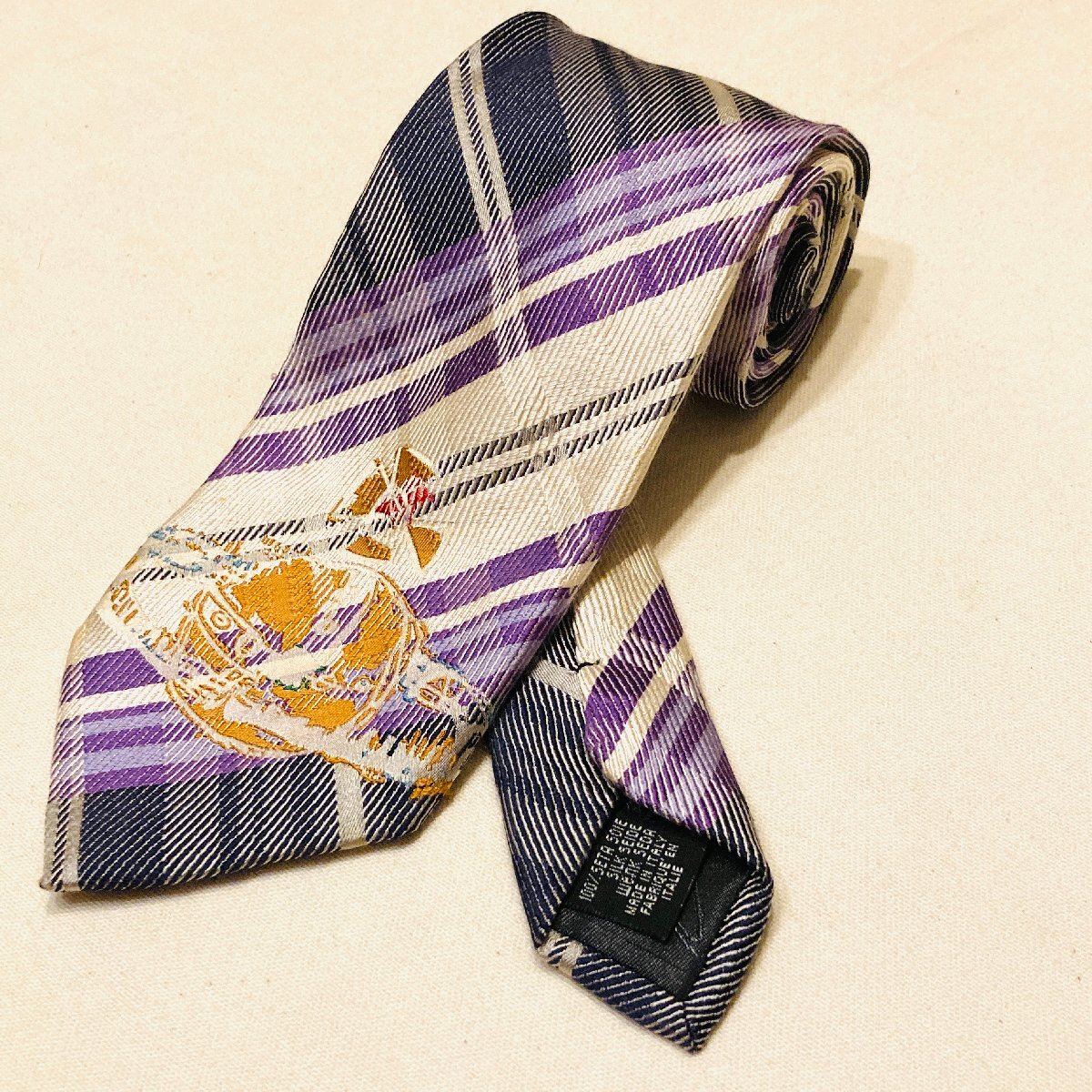 > Vivienne Westwood ヴィヴィアンウエストウッド イタリア製 絹 シルク SILK 100% 高級 ネクタイ パープル系 チェック ロゴ デザイン