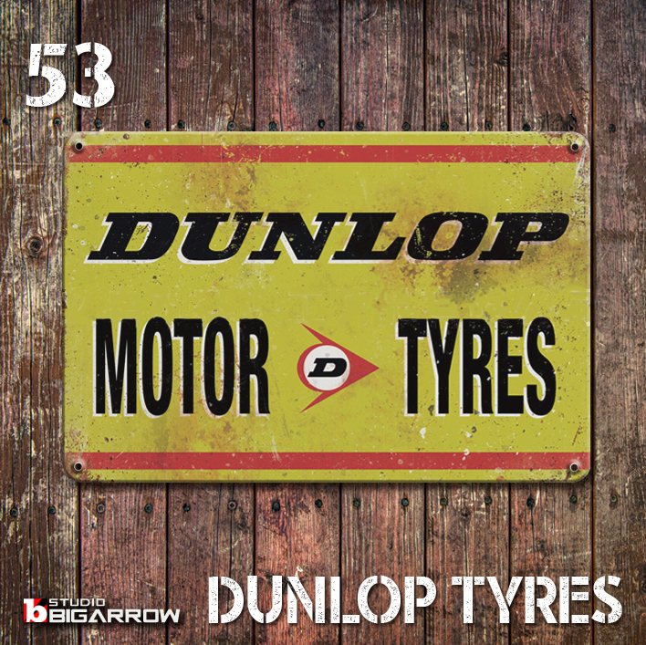 - 53 ブリキ看板 20×30㎝ DUNLOP ダンロップ ガレージ メタルプレート アメリカンインテリア USフェンス 世田谷ベース