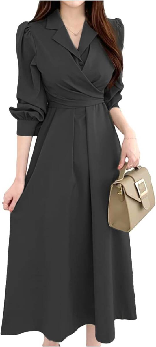 - ワンピース レディース ブラック サイズ:L きれいめ ロングワンピース オフィ